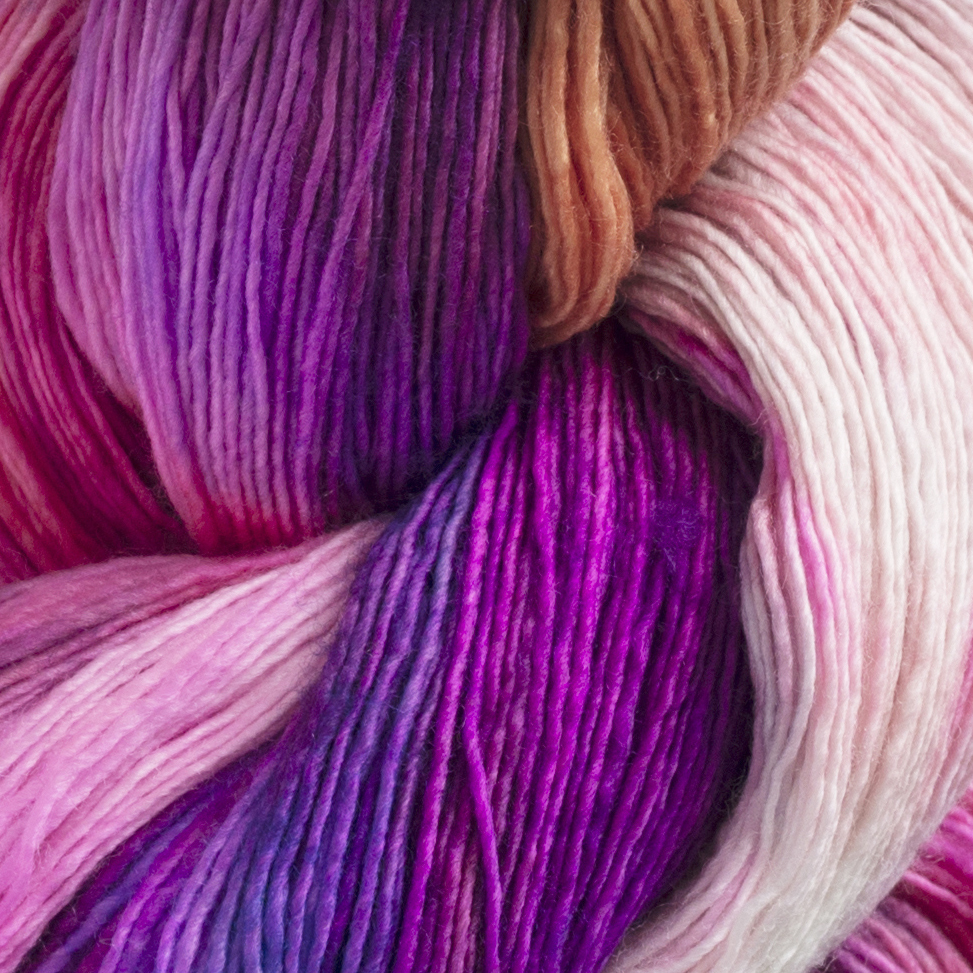 The yarn is hand-dyed and comes in a fantastic palette of beautiful colours. It is super soft so it can be worn directly against the skin. Marina is perfect for thin shawls, scarves, gloves and other luxury projects.