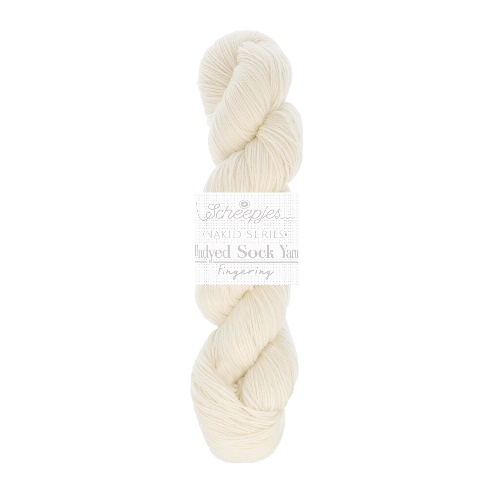 Discover the versatility of undyed yarn with Scheepjes Nakid Series Undyed Sock Yarn. This yarn is part of Scheepjes' Nakid Series, which offers a wide range of undyed yarn options designed to inspire hand-dyers and those who love the natural look. Undyed Sock Yarn is made from a durable blend of 75% Superwash Wool and 25% Nylon, making it soft, warm, and resistant. With its ability to withstand wear and washing, this yarn is ideal for socks but can also be used for many other projects like shawls and garments.