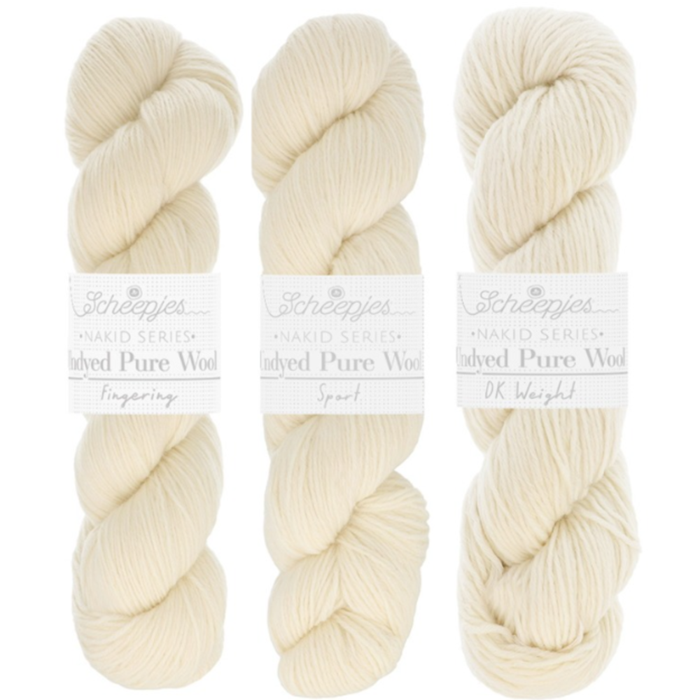 Discover the beauty of undyed yarn with Scheepjes Nakid Series Undyed Pure Wool 100g. This exclusive yarn is part of the Scheepjes Nakid Series, offering a wide range of undyed yarn options for both hand-dyers and those who appreciate yarn in its natural state. Made from 100% Basolan Wool, the yarn is treated to be shrink-resistant and dye-ready, giving you the opportunity to achieve intense and vibrant colors. With three different yarn weights – Fingering, Sport, and DK – this yarn is versatile and ideal for knitting and crochet projects, including garments, home accessories, and shawls.