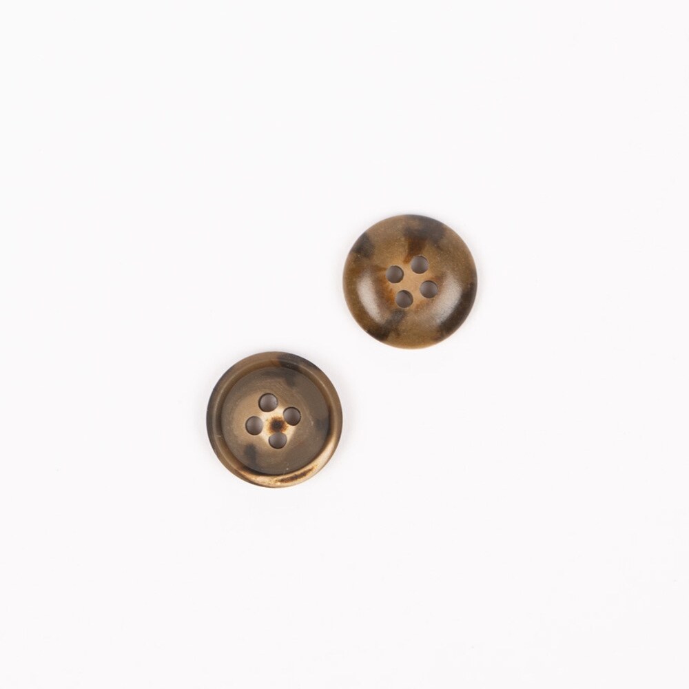 DROPS Imitation Wood buttons in walnut are matte urea buttons designed to resemble natural wood. Each button has unique variations in color and texture, adding a rustic touch to your garments.