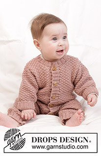 Knitted suit for babies in DROPS BabyMerino. The piece is worked top down with moss stitch. Sizes 0 – 4 years.