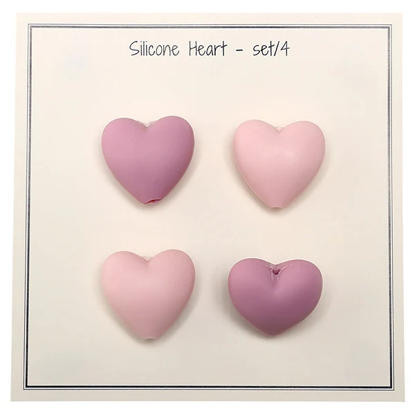 Go Handmade Silicone Beads, Heart, 4 pcs