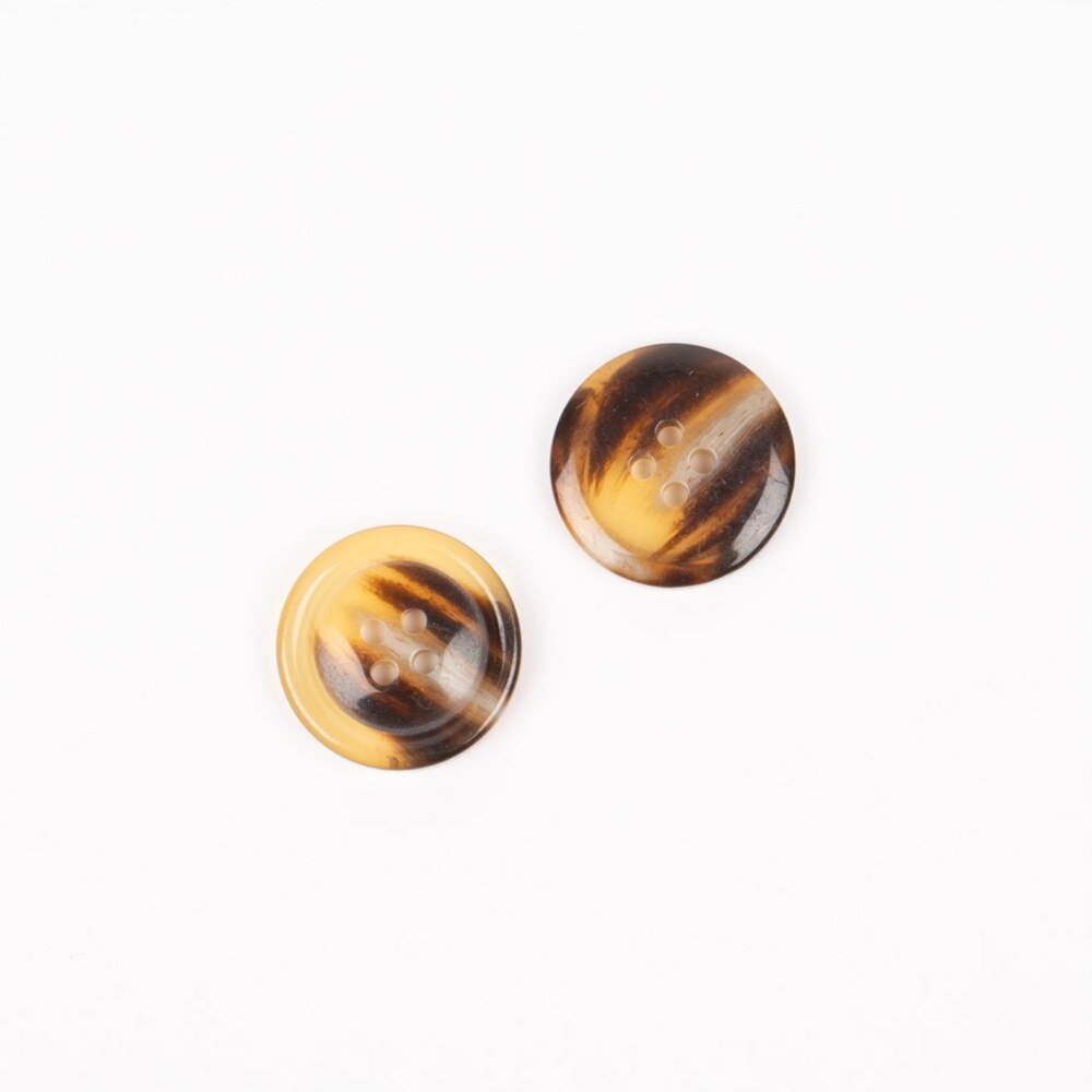 DROPS Imitated Horn is an elegant polyester button with a shiny caramel color and tortoise pattern. Perfect for adding a timeless and classic touch to your projects.