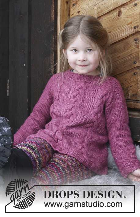 Knitted blouse with twists and raglan for children. Size 2 - 12 years. The work is knitted in DROPS Air .