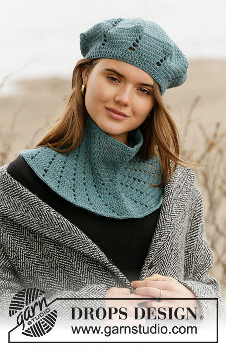 Crocheted beret and neck warmer in DROPS Lima. Crocheted with spiral pattern in treble crochets.