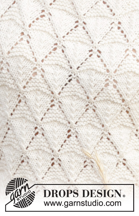 Knitted top in DROPS Muskat or DROPS Cotton Merino. Piece is knitted top down with straps and lace pattern. Size XS – XXXL.