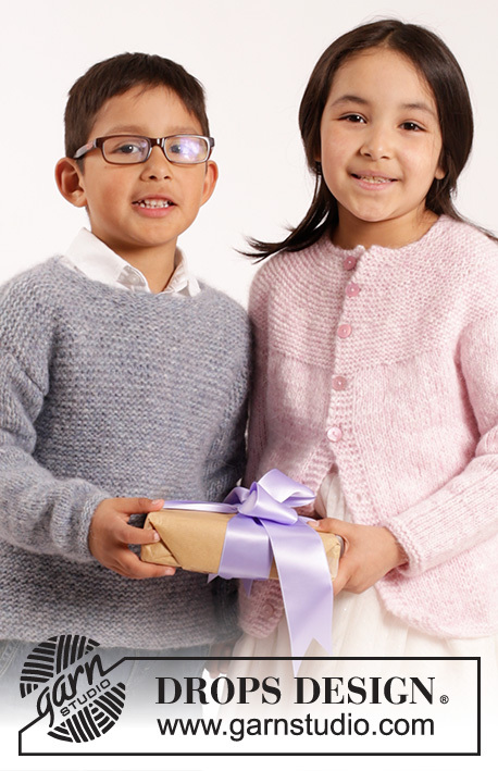 Knitted cardigan in stocking st and garter st with round yoke in DROPS Air or DROPS Paris. Size children 1 - 10 years.