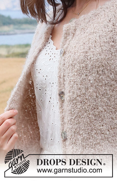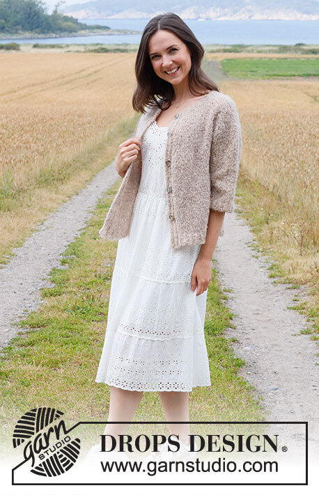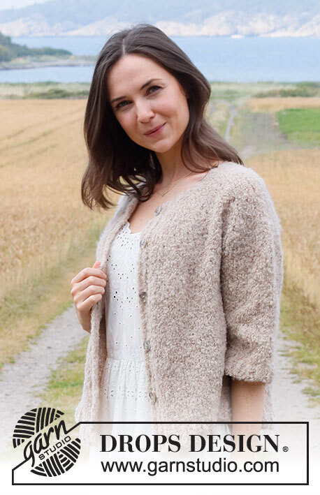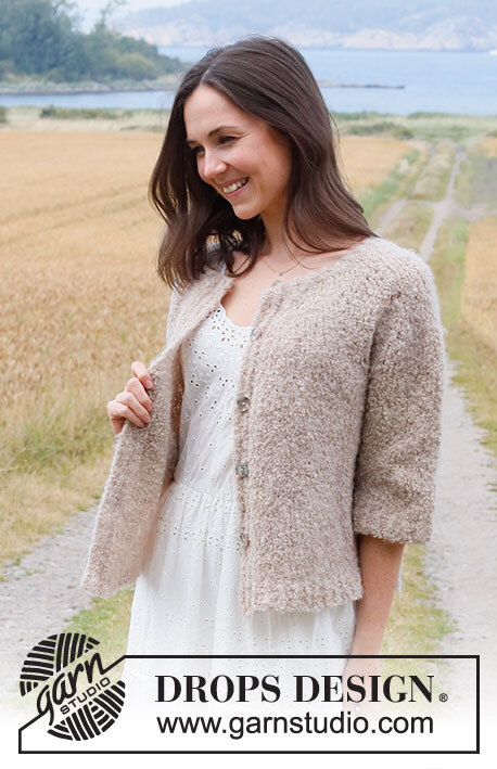 Knitted jacket in DROPS Alpaca Bouclé. The piece is worked top down with round yoke and ¾-length sleeves. Sizes S - XXXL.