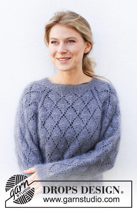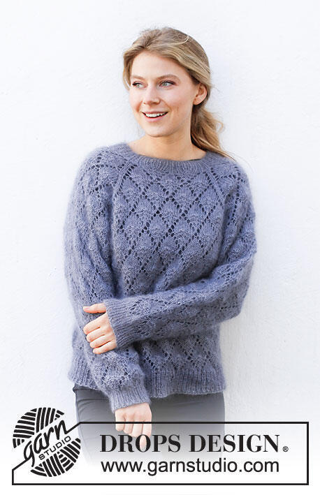 Knitted jumper in 1 strand DROPS Brushed Alpaca Silk or 2 strands DROPS Kid-Silk. The piece is worked top down with raglan and lace pattern. Sizes S - XXXL.