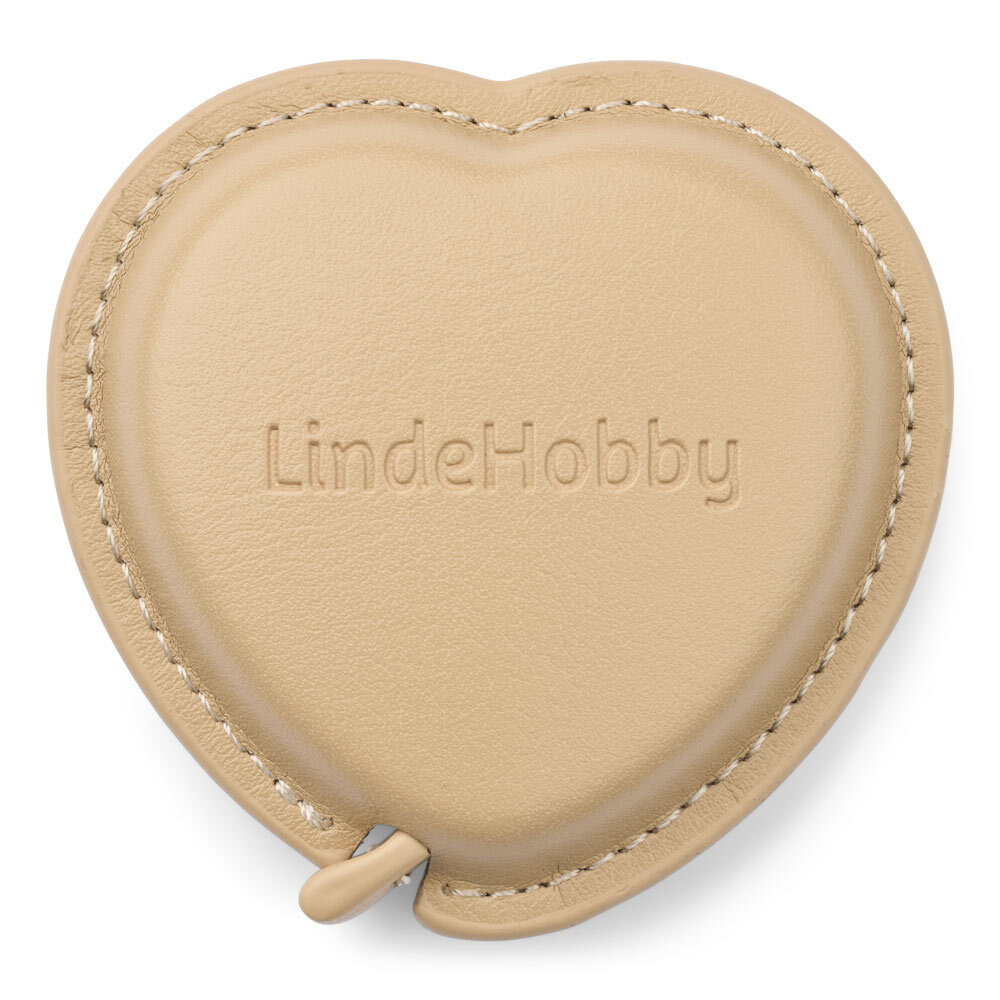 Short description: LindeHobby heart-shaped measuring tape in PU leather is both practical and stylish. Measures in both centimeters and inches and easily retracts with a press of the center.