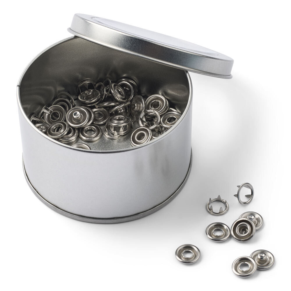 These press studs from LindeHobby come in a practical tin box containing 20 robust studs. Perfect for creative projects where you want to add a functional and stylish closure. The timeless design and durability of the material make them a reliable addition to both clothing and accessories.