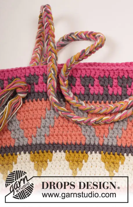 Crochet DROPS bag in 2 threads " DROPS Paris " with color pattern.