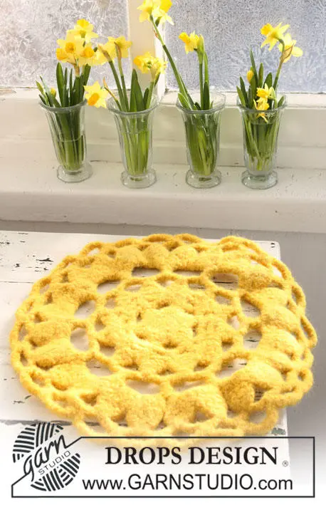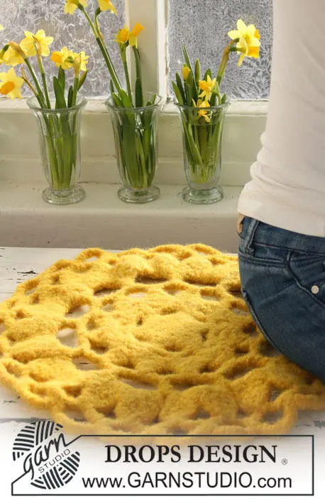 Crochet and felted DROPS seat pad in "DROPS Eskimo" for Easter.