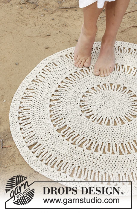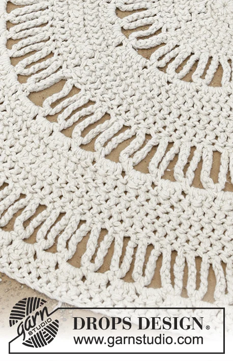 Round carpet with rod masks and hole pattern, crocheted in 3 threads DROPS Paris