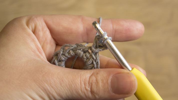 2 ch, 6 sc in 2nd st on ch-chain