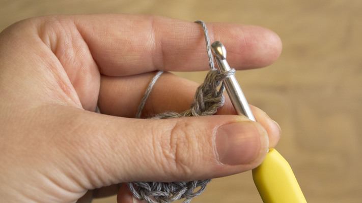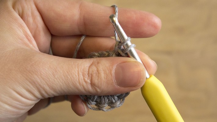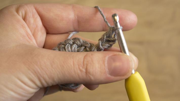 1 sc in the loop from the previous sc (see video), v