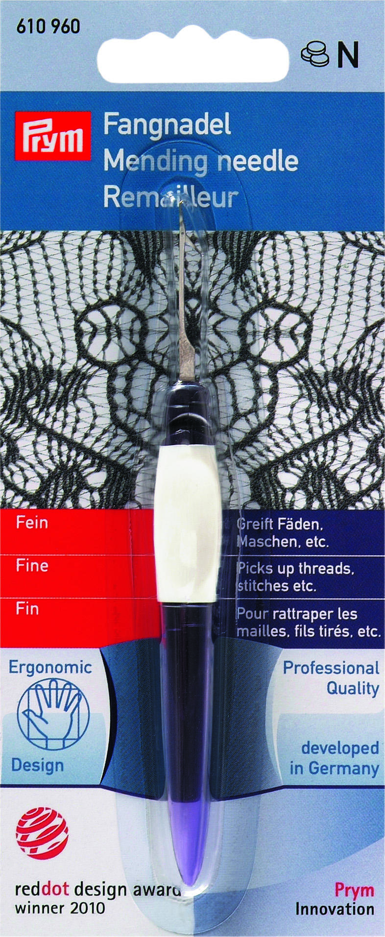 This fine mending needle from the prym.ergonomics series is impressively versatile, because it can be used for picking up and repairing stitches in knitted goods, inserting threads and as a thread-guide in overlock machines.