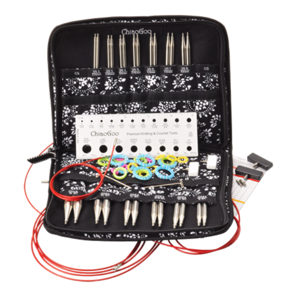Experience ultimate flexibility and precision with the ChiaoGoo Interchangeable Circular Needle Set Twist Red Lace. This comprehensive set features surgical-grade stainless steel tips and memory-free cables, making your knitting projects a joy to work on. Ideal for both beginners and experienced knitters who value versatility and quality in one convenient set.