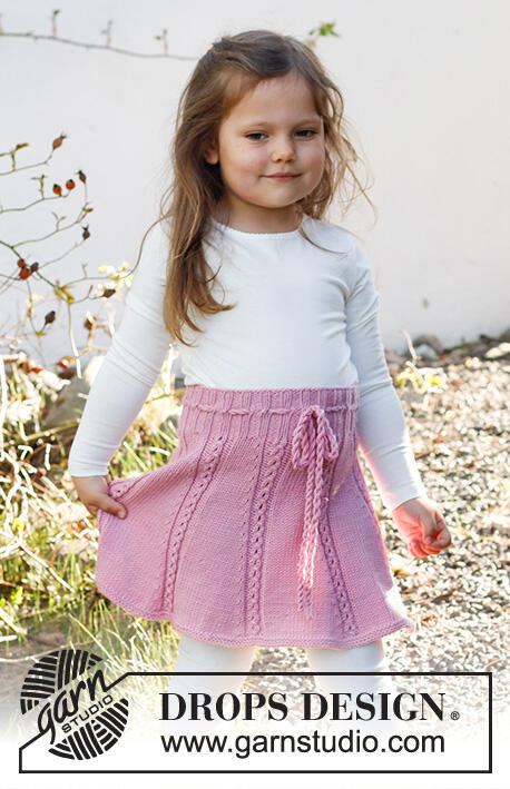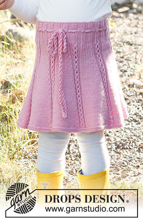 Knitted skirt for kids in DROPS Merino Extra Fine. Piece is knitted top down with lace pattern. Size 2 - 12 years