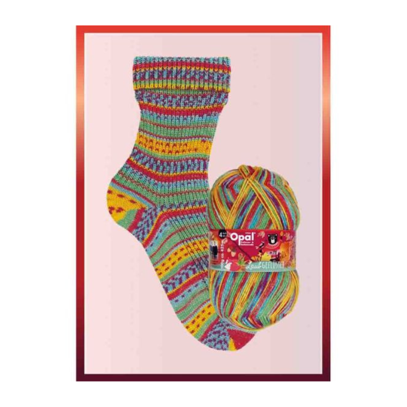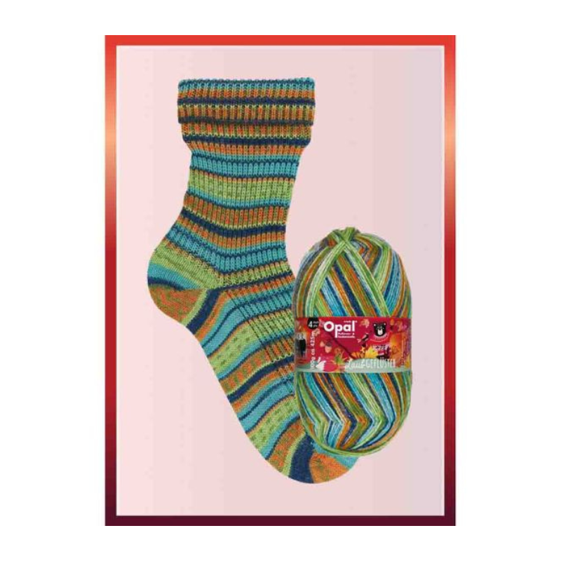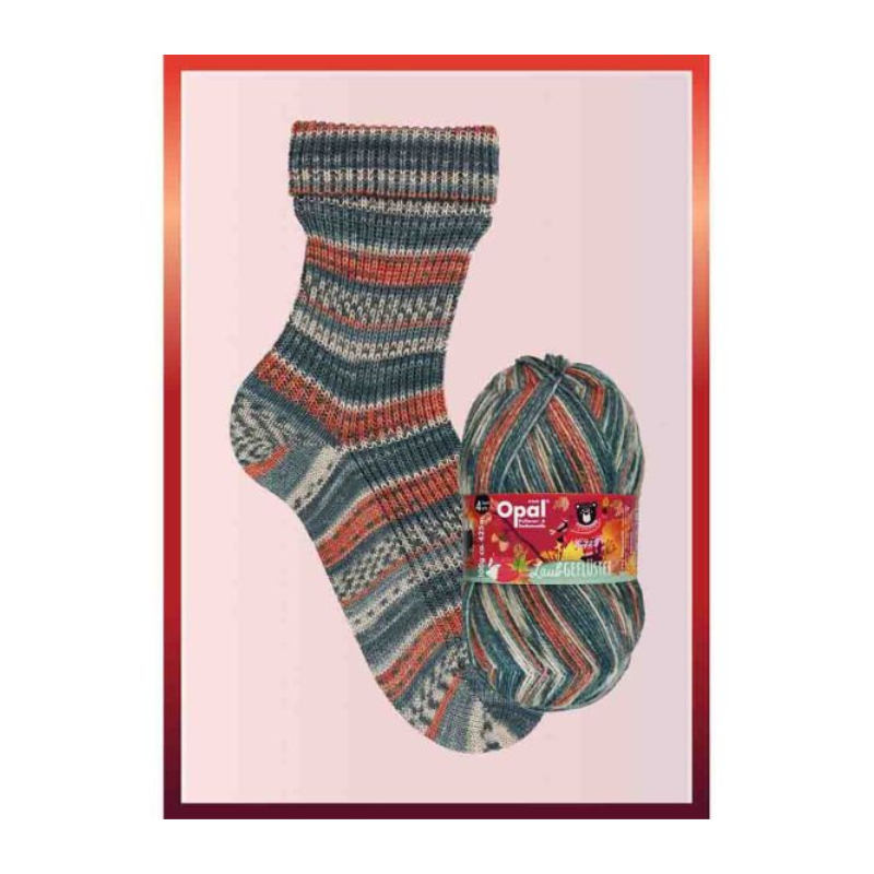 Usage: Opal Laubgeflüster 4-ply is your ideal companion for winter. This yarn is especially suited for knitting thick, warm socks that envelop your feet in warmth all day long. Its robust structure along with beautiful colors offer endless possibilities for creating personal and lasting winter accessories, from beautiful socks to charming gloves and cozy hats.