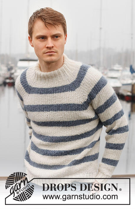 Knitted sweater for men in DROPS Sky. The piece is worked top down with raglan, stripes and textured pattern. Sizes S - XXXL.