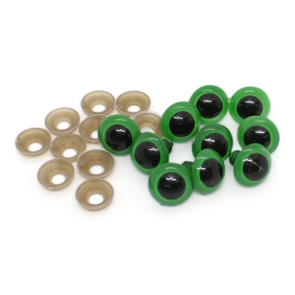 These Teddy Bear eyes from HobbyArts offer a great way to add some colour and character to your stuffed toys and knitted wares. The green colour instantly pops these eyes out while the polished finish adds that lifelike glow to them. Our selection of sizes and colours ensures you'll find just what you need to complete your stuffed masterpiece. Plus, our safety eyes are made with a locking mechanism to keep them in place - ensuring a finished product that is safe for children to play with.