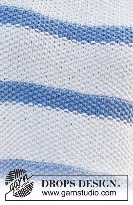 Knitted top in DROPS Paris. Piece is knitted bottom up, with moss stitch and stripes. Size: S - XXXL