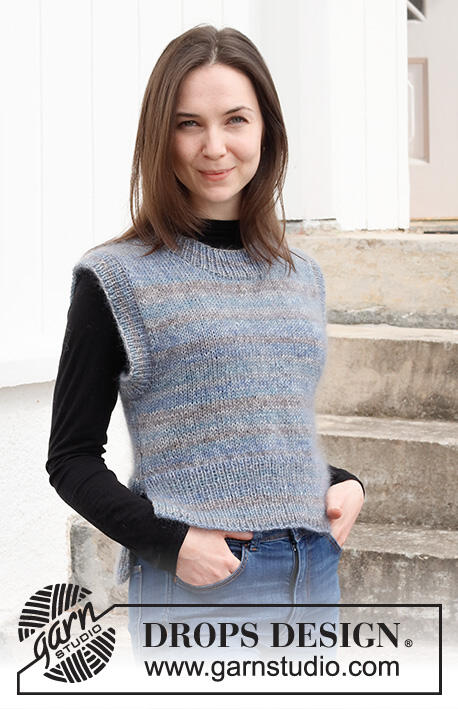 Knitted vest in 1 strand DROPS Fabel and 1 strand DROPS Kid-Silk. Piece is knitted in stocking stitch with edges in rib. Size: S - XXXL