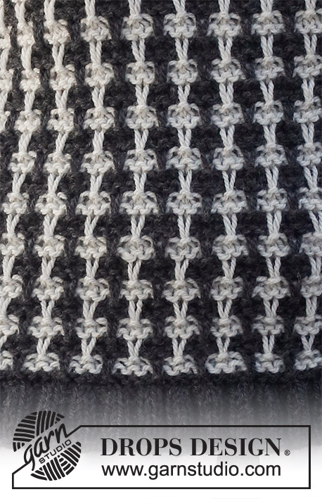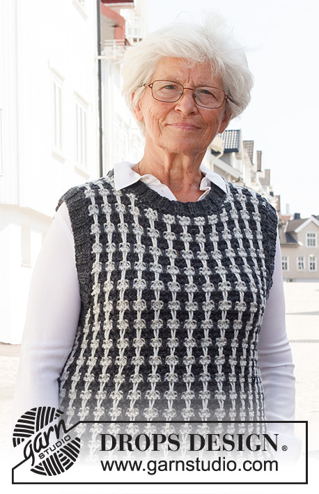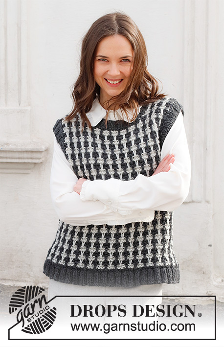 Knitted vest / slipover in DROPS Alaska. Piece is knitted with pepita pattern and edges in rib. Size: S - XXXL