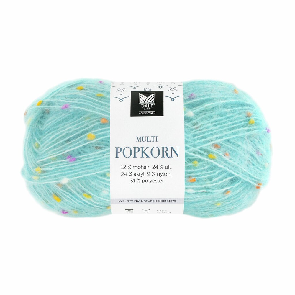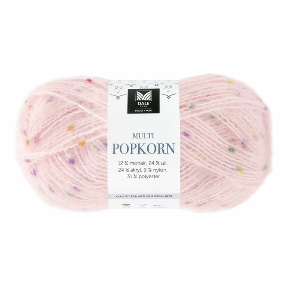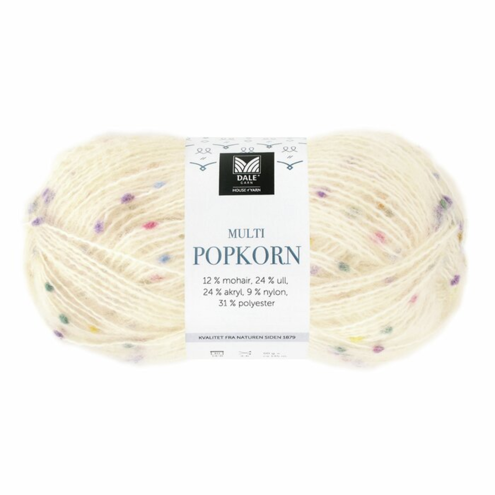 Dale Multi Popkorn is an exciting effect yarn from Dale Garn featuring small, colorful bobbles that add texture and vibrancy to your projects. It is soft and flexible, perfect for use on its own or combined with other yarns to create unique designs.