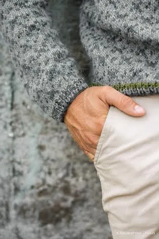 Stick : Round needles size 4 and 5, Small circular needle size 5 for neck and double pointed needles for sleeves.